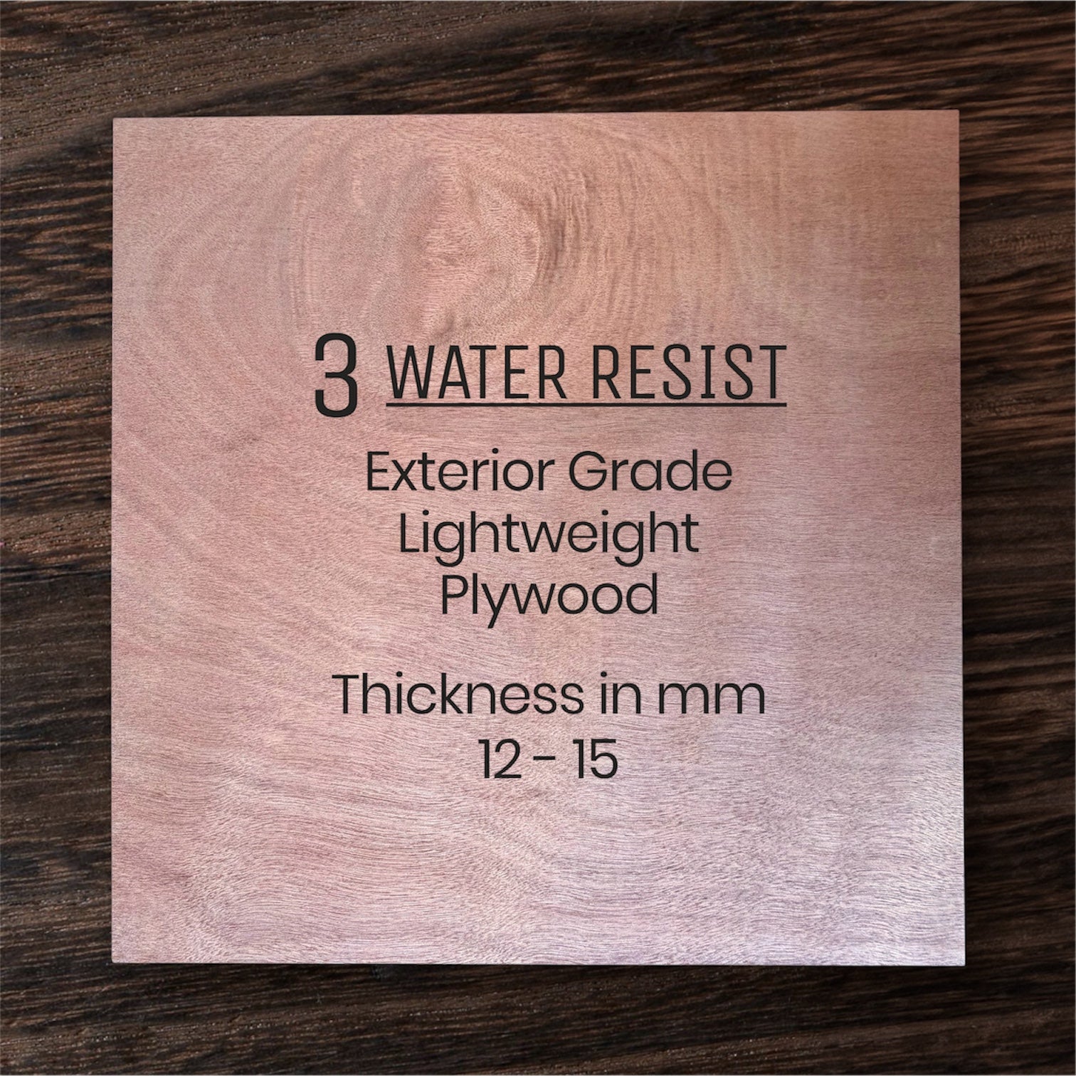 • 1 x 12mm Water-Resist Plywood Sample: Built to withstand moisture, great for outdoor or high-humidity environments.
